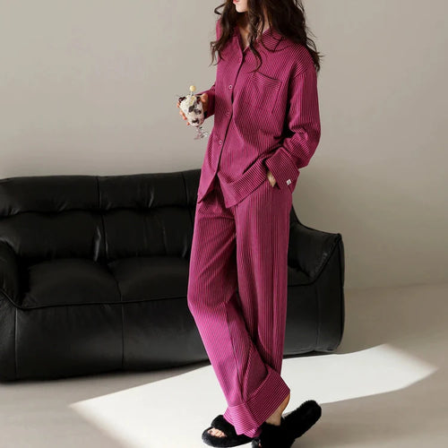 Pastel Pembe Çizgili Modal Pamuklu Pijama Takımı